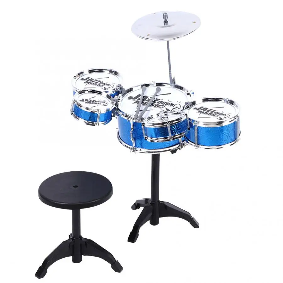Детский набор джазовых барабанов для малышей, детский набор музыкальных обучающих барабанов, игрушечный музыкальный инструмент с табуретом для мальчиков и девочек