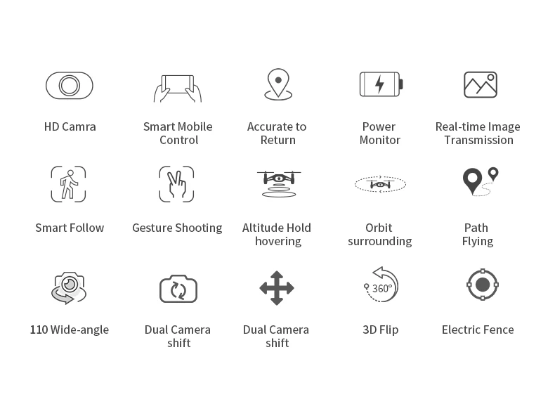 Этот Дрон может следить за предметом съемки и снимать с 360 °, чтобы получить панораму при запуске орбиты окружающего режима.