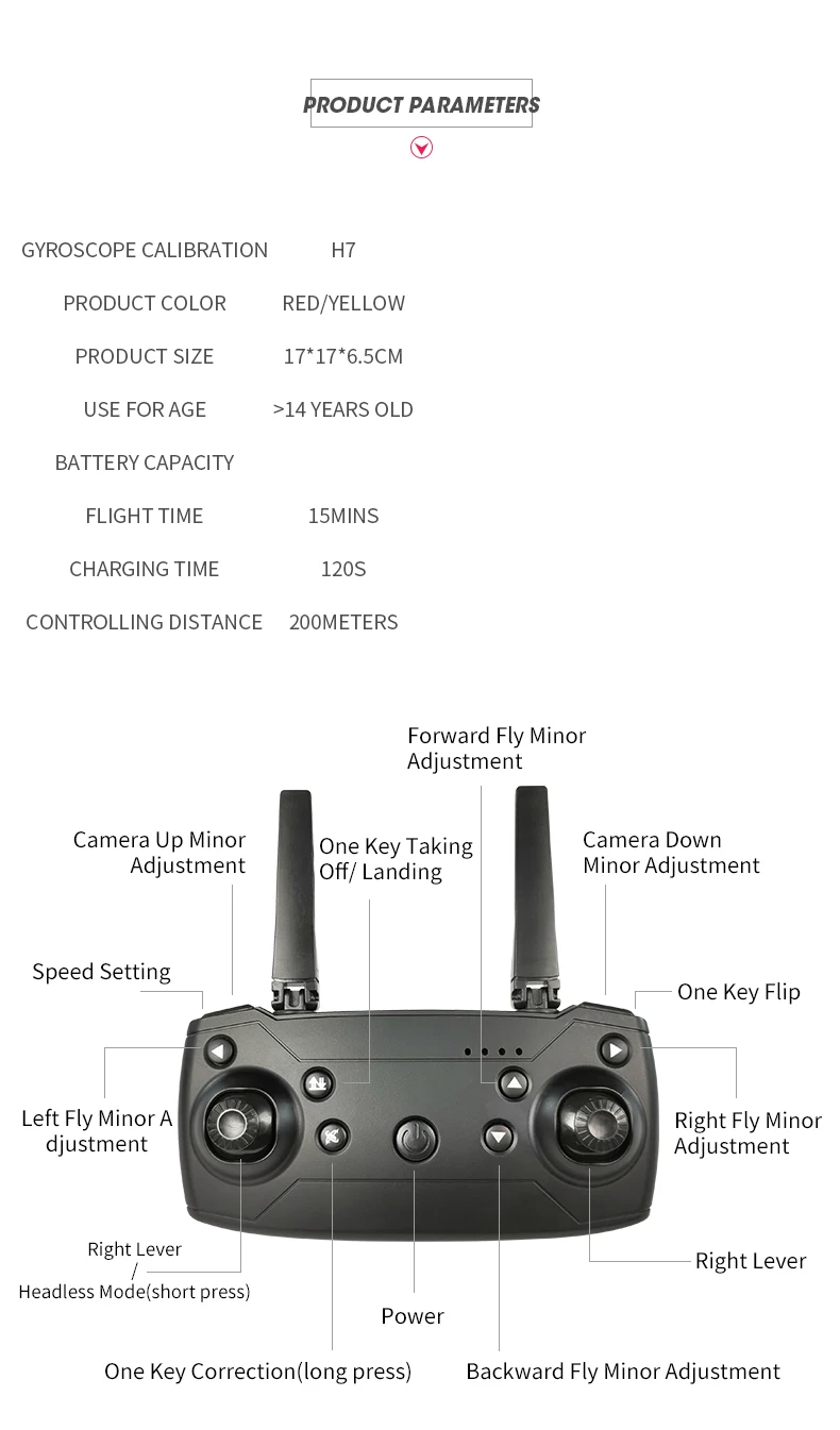 Название продукта: H7 gps Дрон батарея для дрона: 7,4 В 850 мАч модульный Размер: 29*29*7 см Разрешение изображения: 4096*2160 P Разрешение видео: 1920*1080 P FPV расстояние: время зарядки 300 м: 2 часа срок службы батареи: около 15-17 минут