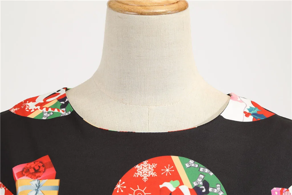 Винтажный вышитый Рождественский принт плюс Европейский королевский стиль придает вам элегантный стиль в стиле ретро; Облегающий и расклешенный силуэт подчеркивает Вашу фигуру