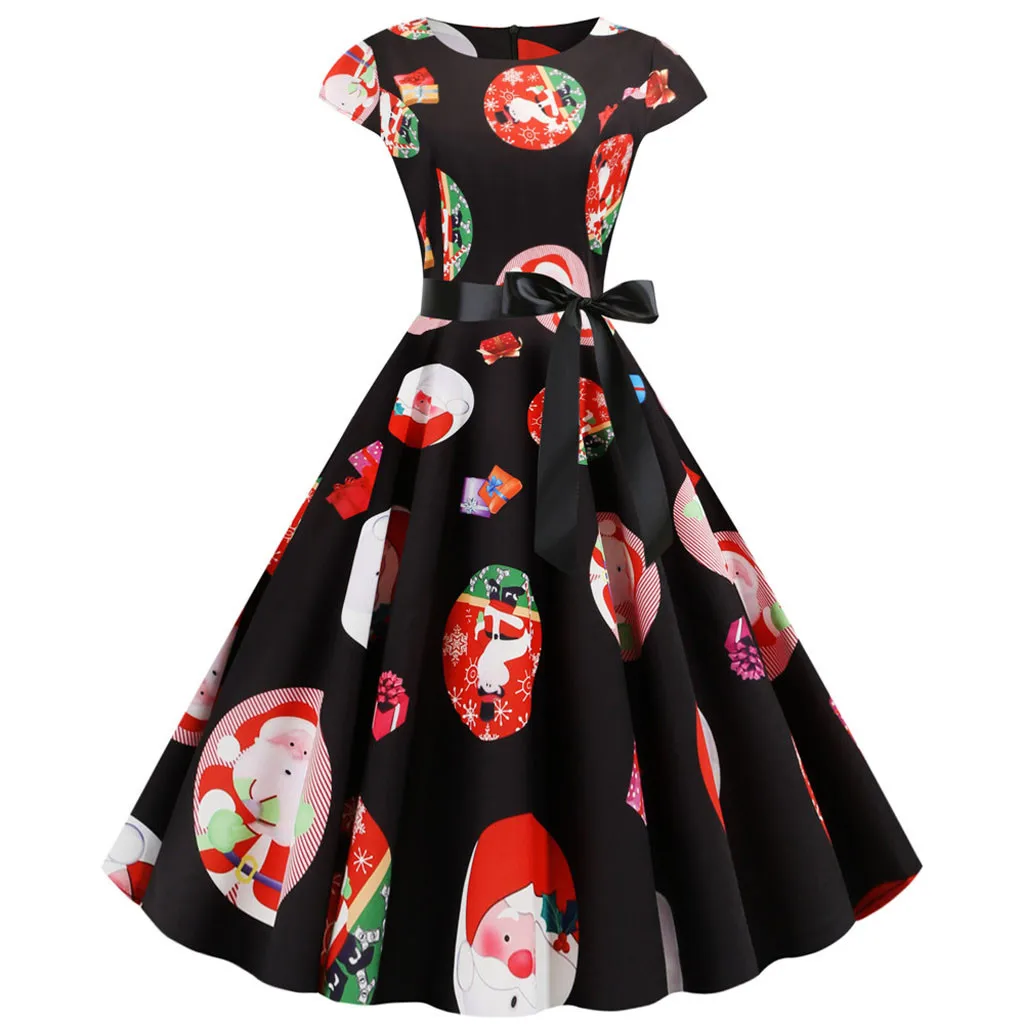 Женское винтажное рождественское платье с коротким рукавом 1950s, вечерние платья для выпускного вечера
