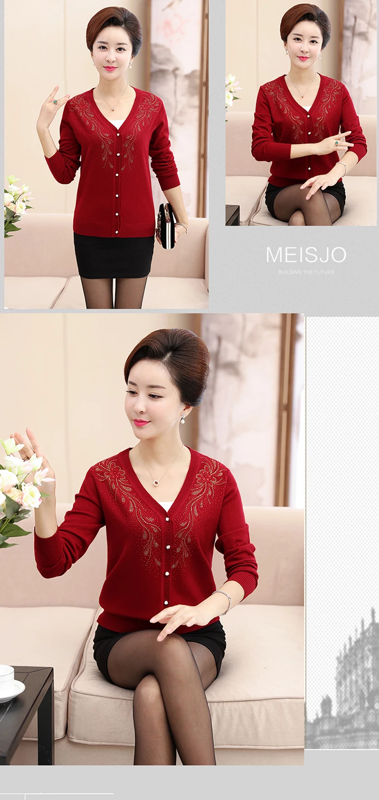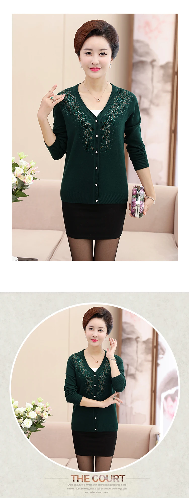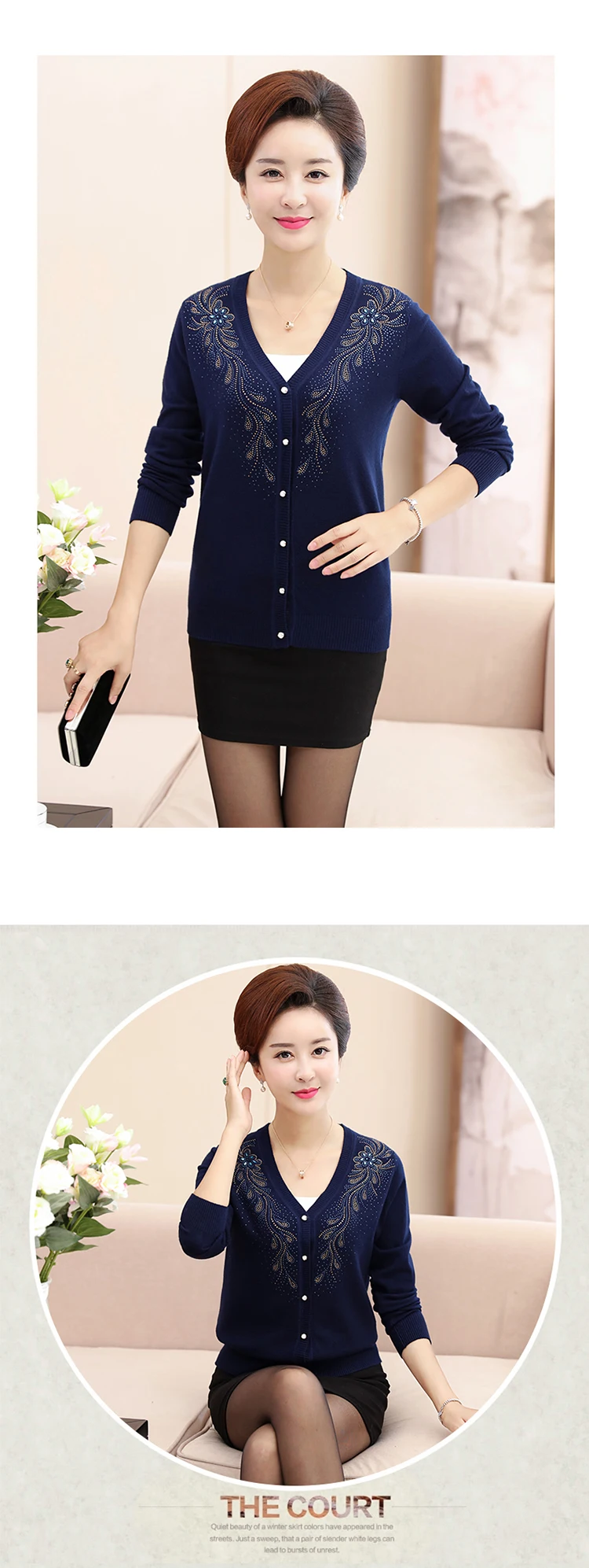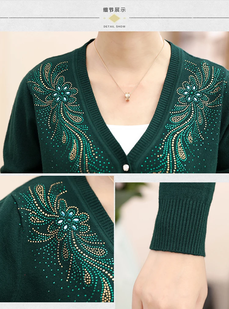 Clobee 2020 трикотаж для осени китайский стиль кардиган среднего возраста свитер большого размера Женская одежда с цветочной вышивкой J18