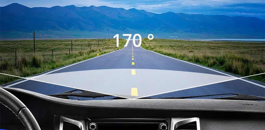 С широкоугольным фронтальным объективом на 170 градусов камера отслеживает 3 полосы. Наслаждайтесь путешествием и обеспечивает точные и детальные записи.