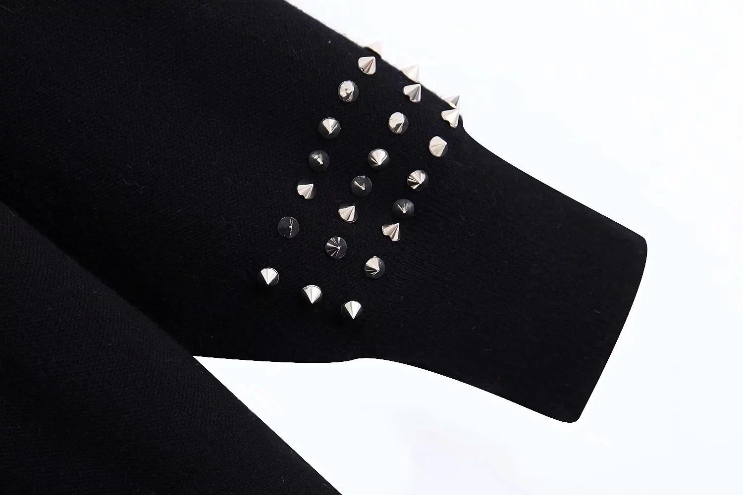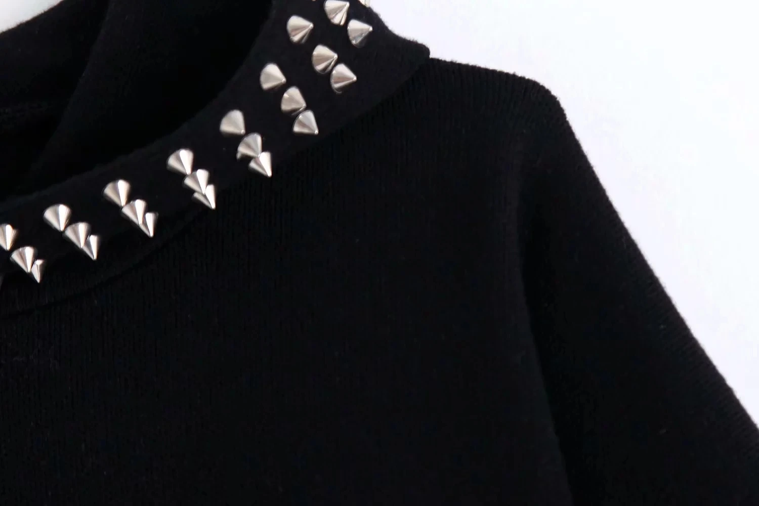 Женская зимняя толстовка с заклепками, модные вязанные пуловеры с капюшоном zora vicky, верхняя одежда, большие размеры, черный топ, толстовки, Толстовка 2019