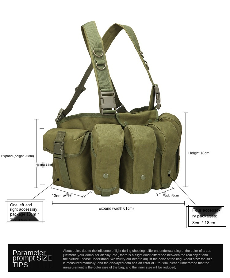 Есть два ряда вместительных для этого жилета, четыре пули в задней части и пять мешков для хранения в передней части, из которых можно использовать две сумки Для хранения небольших сумок, комбинированных инструментов или флэш-светильник, два других откидных чехла могут быть использованы для установки спасательного мигающего светильник, остальное может быть загружено дымовыми бомбами и т. Д.