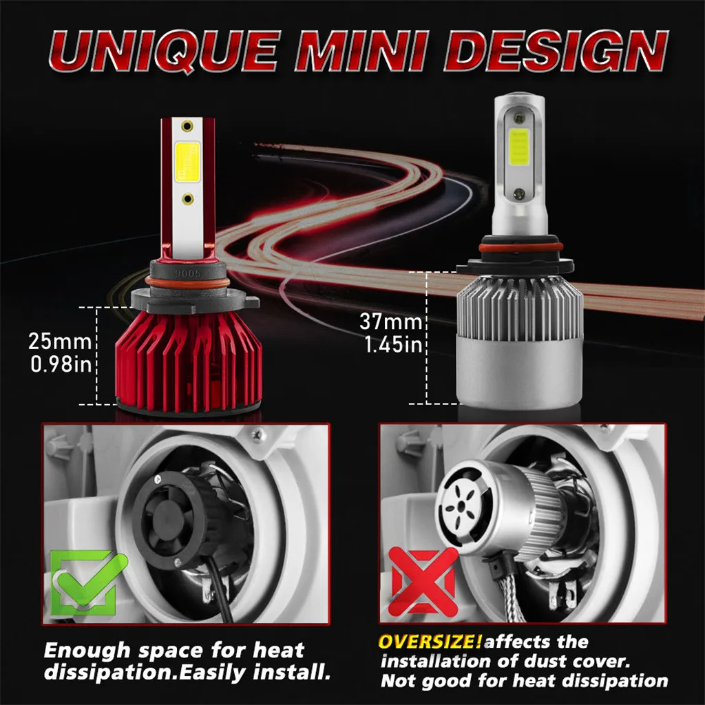 Car Led Light 9005/HB3 100W 10000LM COB LED Car Headlights Full Aluminum x 2