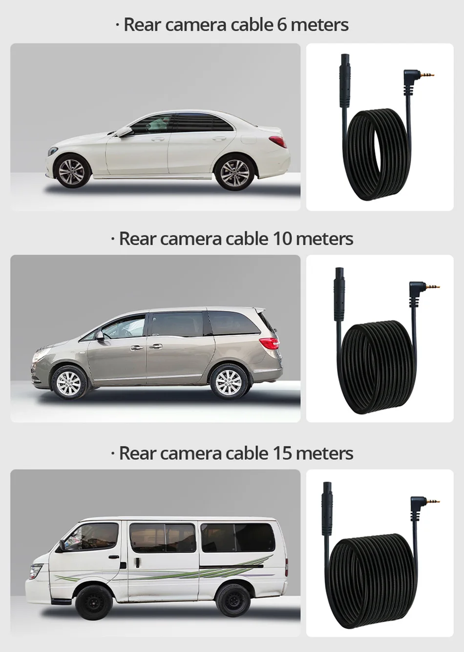 Есть 3 длины задней камеры (до около 15 метров) можно выбрать, подходит для автомобилей различной длины. Пожалуйста, выберите заднюю камеру в соответствии с длиной вашего автомобиля.