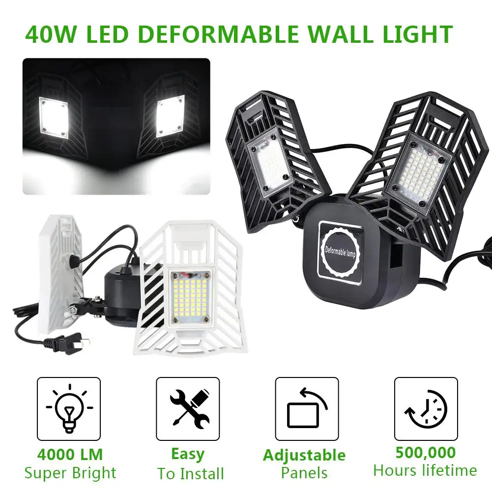 1. 【Превосходный деформируемый светодиодный настенный светильник 】 светодиодный настенный светильник с 2 регулируемыми крыльями и ослепляющим 4000 люменов, обновленный 40 Вт супер яркий светильник гаража будет вашим новым любимым светильник! Используйте Настенный светильник, чтобы направить этот мощный светильник точно там, где он вам нужен, что делает его отличным hands-free светильник. Попрощайтесь с dim!1x светодиодный светильник лампочка