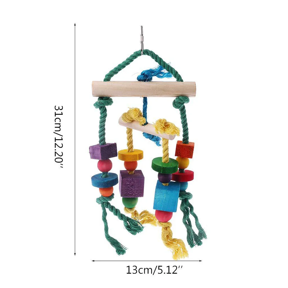 Красочная деревянная подставка барный блок веревка попугай подъем укус качели клетка птица игрушка для домашних животных