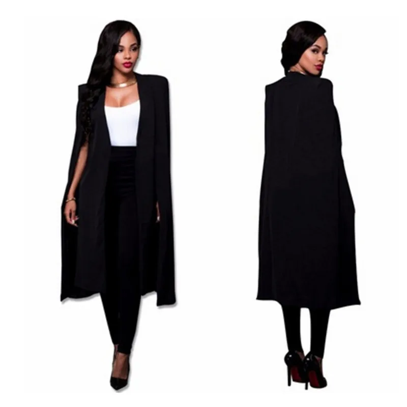Женский длинный костюм, Блейзер, офисное Женское пальто, однотонный длинный рукав, накидка, пончо, женский элегантный пиджак, Женский деловой костюм, Блейзер, feminino