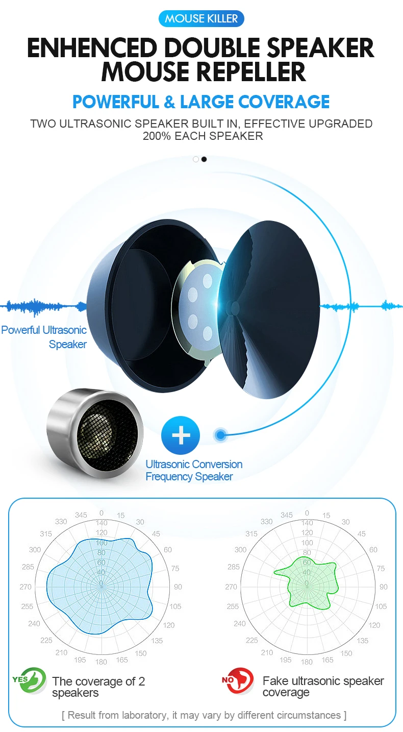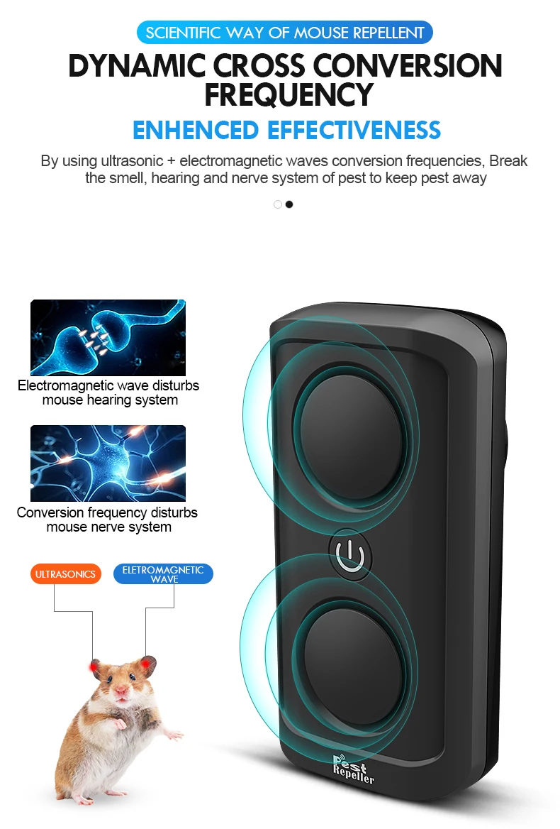 Особенности 1. Нет больше вредителей в вашем доме: наш Отпугиватель вредителей излучает мощный ультразвуковой, который эффективно отпугивает почти все вредители, такие как мыши, комары, муравья, крысы, локоны, пауки, мухи и другие насекомые. Останавливает раздражающие вредители от возвращения в ваш дом. 2. Экологически чистый и безопасный дизайн, без химических веществ, без запаха, нетоксичный и без излучения. 100% безопасно для человека и домашних животных. 3. Широкий эффективный охват: новейший 8 Вт Мощный Отпугиватель вредителей, с улучшенными 4D двойными динамиками, обеспечивает покрытие на 360 ° почти 2000 кв. футов, вот почему наш Отпугиватель вредителей более эффективен, чем обычные 2 Вт на рынке.