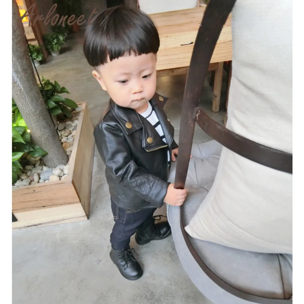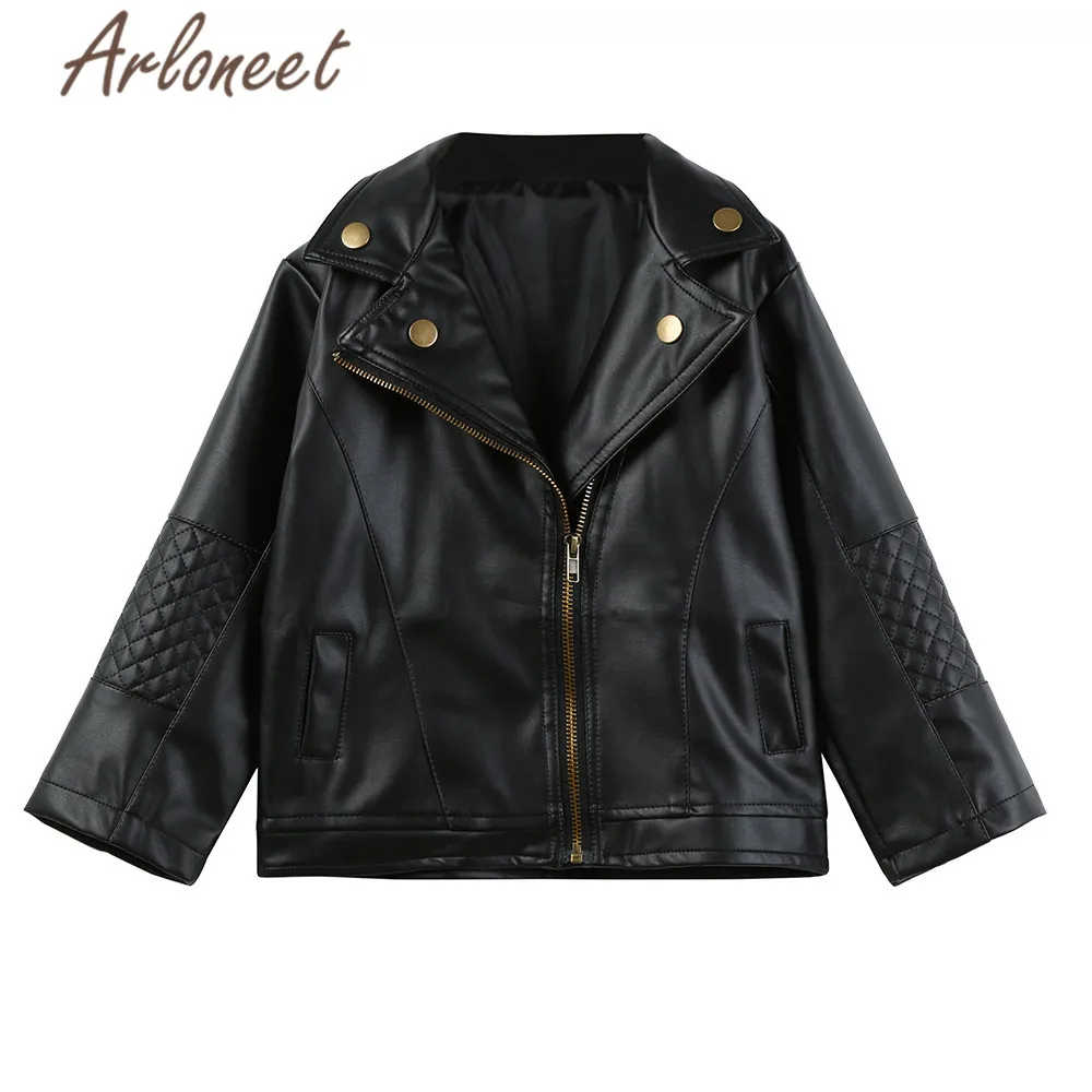 ARLONEET детское кожаное пальто, пальто с длинными рукавами для девочек, зимняя модная черная короткая куртка, верхняя одежда для малышей, пальто на молнии для мальчиков, верхняя одежда