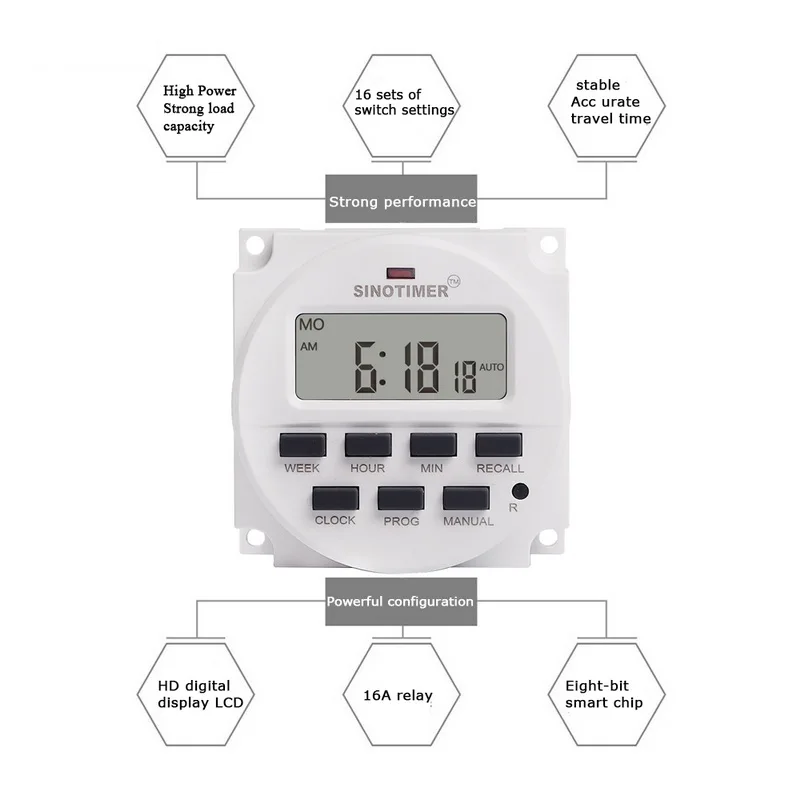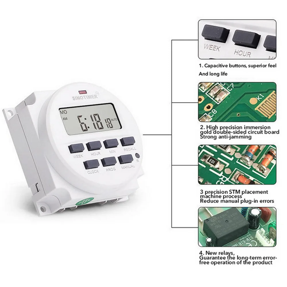 * Широкое использование: Может использоваться для включения/выключения любого электрооборудования по заданному таймеру, например, уличный светильник, рекламный щит, неоновый светильник (знак), вещательное оборудование, электроприборы и многое другое.