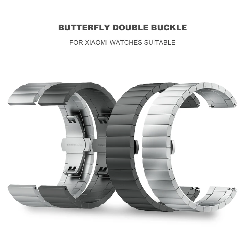 Роскошные Сменные Ремешки для наручных часов Xiaomi, умные часы с бабочкой и двумя пряжками, одноцветные Стальные Ремешки, аксессуары для наручных часовUS $10,57