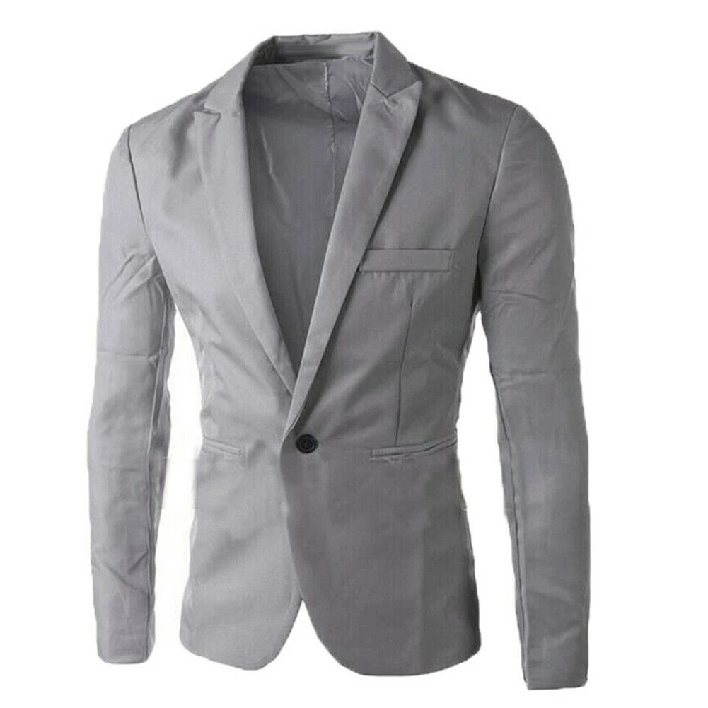 Для мужчин сплошной Цвет длинные рубашки с длинными рукавами с отворотами на одной пуговице блейзер с карманами тонкий и Fit костюм пальто