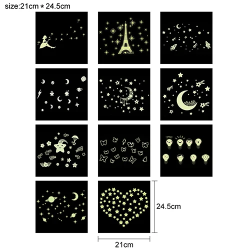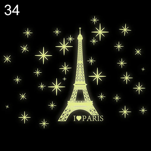 DIY звезды Эйфелева башня светится в темноте наклейки на стену флуоресцентные светящиеся наклейки