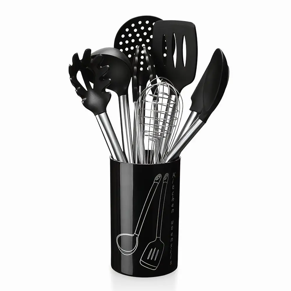 Набор включает в себя: Тонг, венчик, щелевой ковш, щелевой Тернер,Паста Сервер, лопатка, ложка, половник для супа