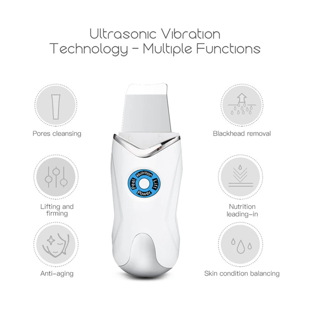 Все-в-1 Скруббер кожи: Это устройство имеет функции ультразвукового отшелушивания, EMS лифта и пленки, ионтофореза, и удаления черных точек и акне. 3 функциональных режима: 1) глубокое очищение; 2) Высокая частая Вибрация проникает в кожу примерно на 3-5 мм глубину, ведущая в питании; 3) улучшает впитывание кожи для защиты от возрастных морщин. Высокотехнологичный микроток EMS: массаж и стимуляция мышц через микроток для восстановления эластичности мышц, лифтинга лица и укрепления. Ионтофорез: импортировать питание глубоко в дно кожи, помогая коже лучше и полностью впитывать эссенцию. Безопасный и USB Перезаряжаемый: Изготовлен из корпуса ABS и медицинской нержавеющей стали для всех цветов и типов кожи. Безопасно и эффективно. Идеальный подарок для ваших друзей, семьи и влюбленных.Спецификация Цвет: черный, белый Наименование: ультразвуковой инструмент для скруббера кожи Выходная мощность: 2 Вт Емкость аккумулятора: 800 мА · ч Время зарядки: около 3 часов Время использования: более 1 часа Входное напряжение: 5 В постоянного тока Материал: АБС + фурнитура