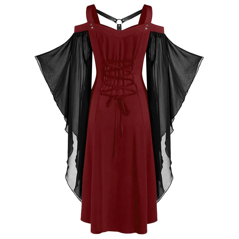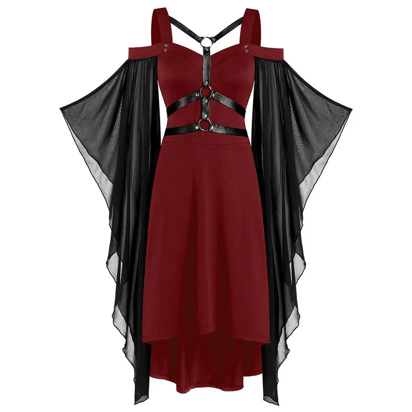Женское винтажное готическое платье размера плюс, платье с рукавом-бабочкой и открытыми плечами на бретелях L-5XL для вечерние НКИ и шоу женский костюм для косплея, 910