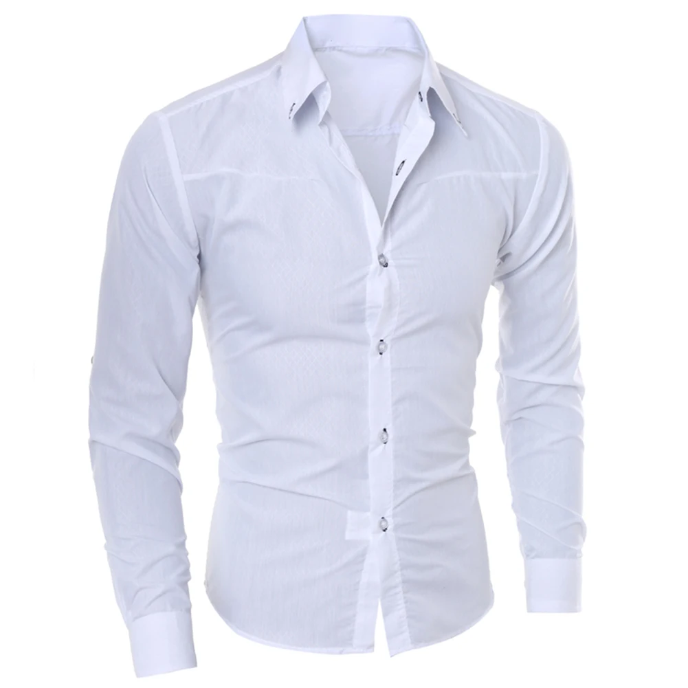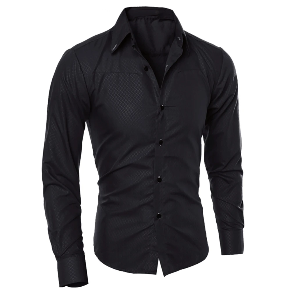 Мужская Однотонная рубашка с воротником, облегающая Классическая рубашка с длинными рукавами, лидер продаж, 2019