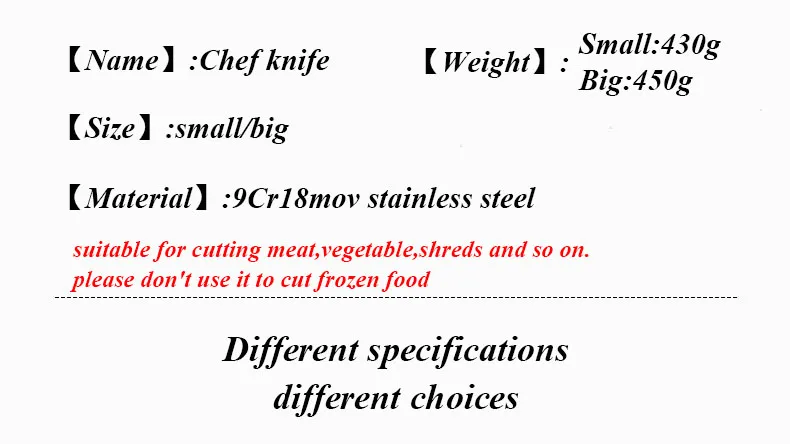 Описание товара Вес упаковки: Маленький размер: 430 г Большой размер: от 450 г 9cr18 лезвие из нержавеющей стали Длина лезвия: Маленький размер: 24 см Большой: 24,5 см Общая длина: Маленький размер: 34 см Большой: 34,5 см Комплектация: 1 шт. Примечания: 1. Из-за различных настроек монитора и освещения фактический цвет изделия может немного отличаться от цвета, показанного на фотографии. Спасибо! 2. Замеры сделаны вручную, поэтому возможны незначительные отклонения.