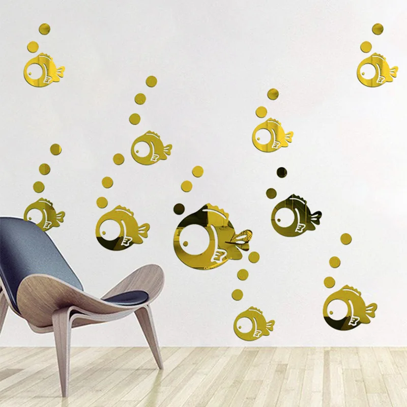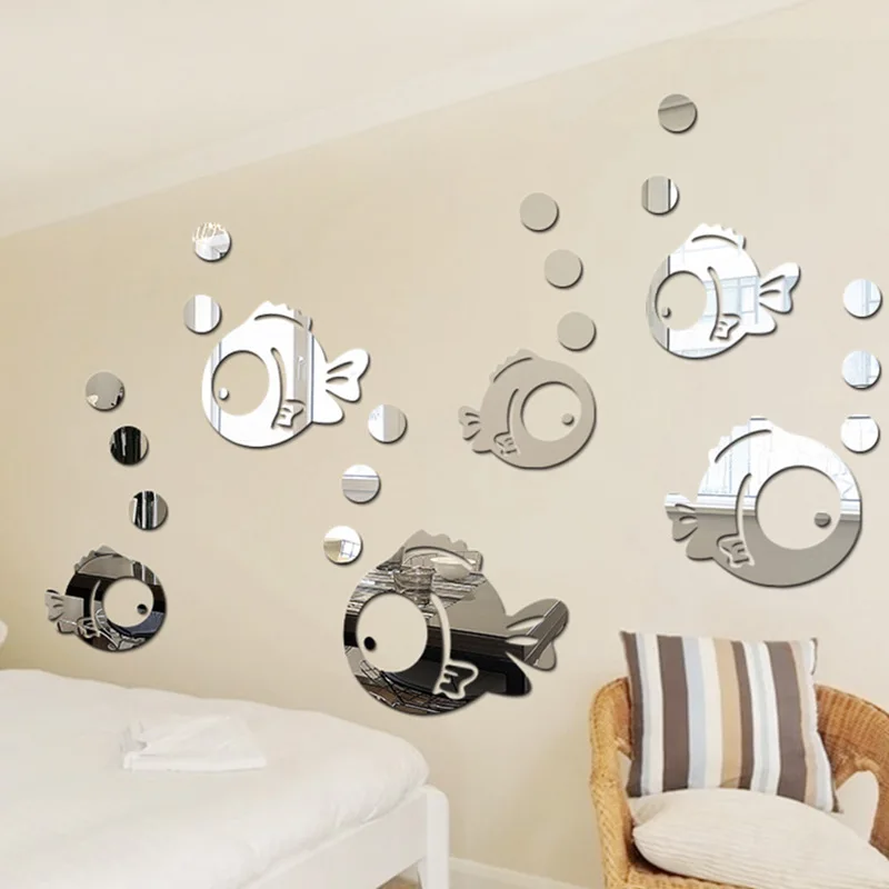 Объемные акриловые зеркальные наклейки в виде рыбки-пузыря для ванной комнаты, детской комнаты, детского сада, декорации на стену, мультяшная Фреска