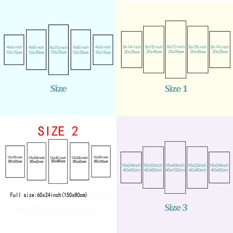Размер 3:40x60cmx2,40x80cmx2,40x100cmx1 [16x24inx2,16x32inx2,16x40inx1]