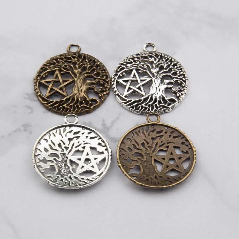 50 шт./лот, винтажное ювелирное изделие, викинговое полое дерево, пентаграмма, кулон, сплав, готические подвески, дружба, подарки, аксессуары, Mujer