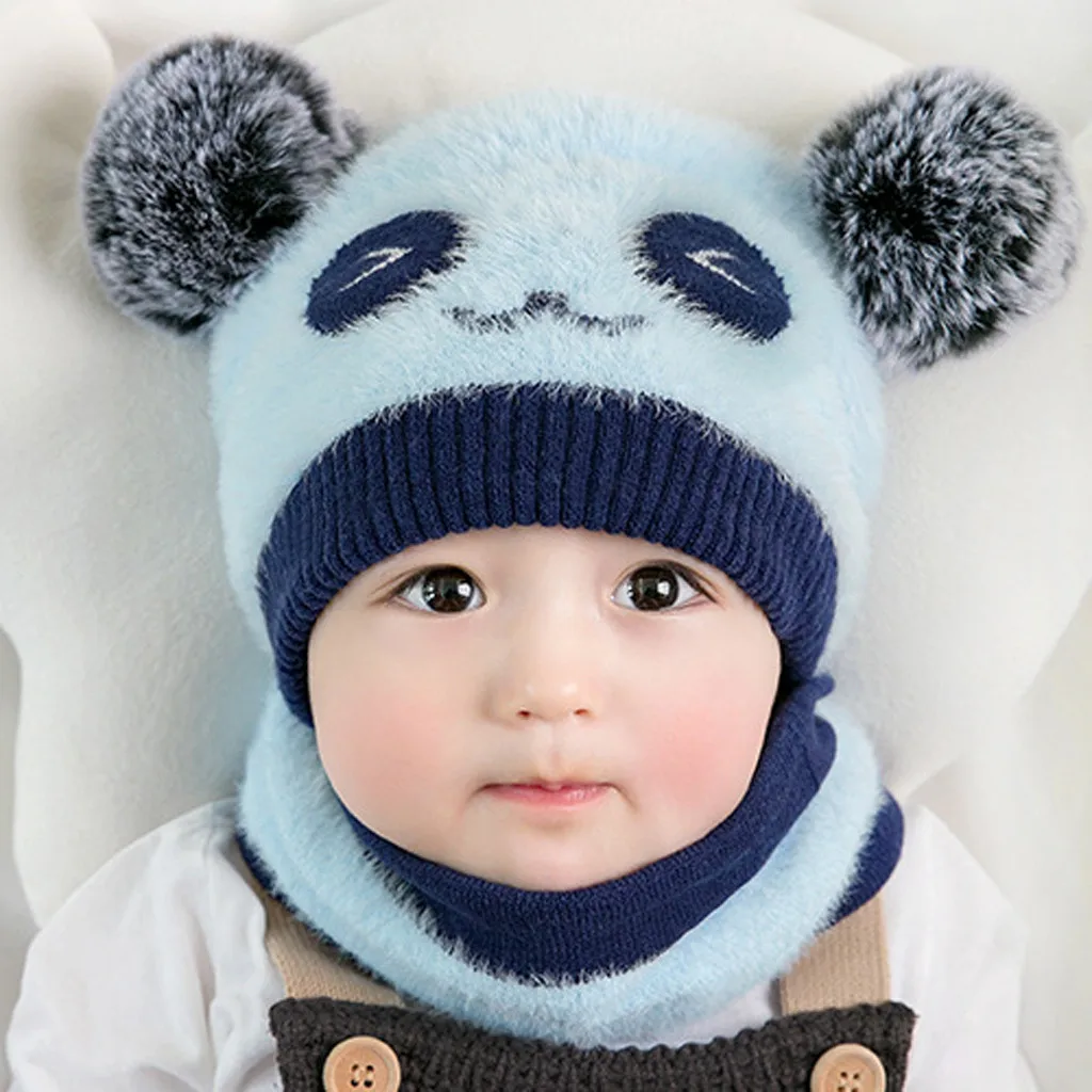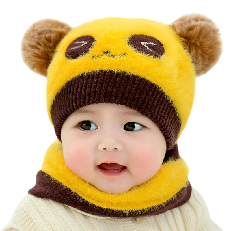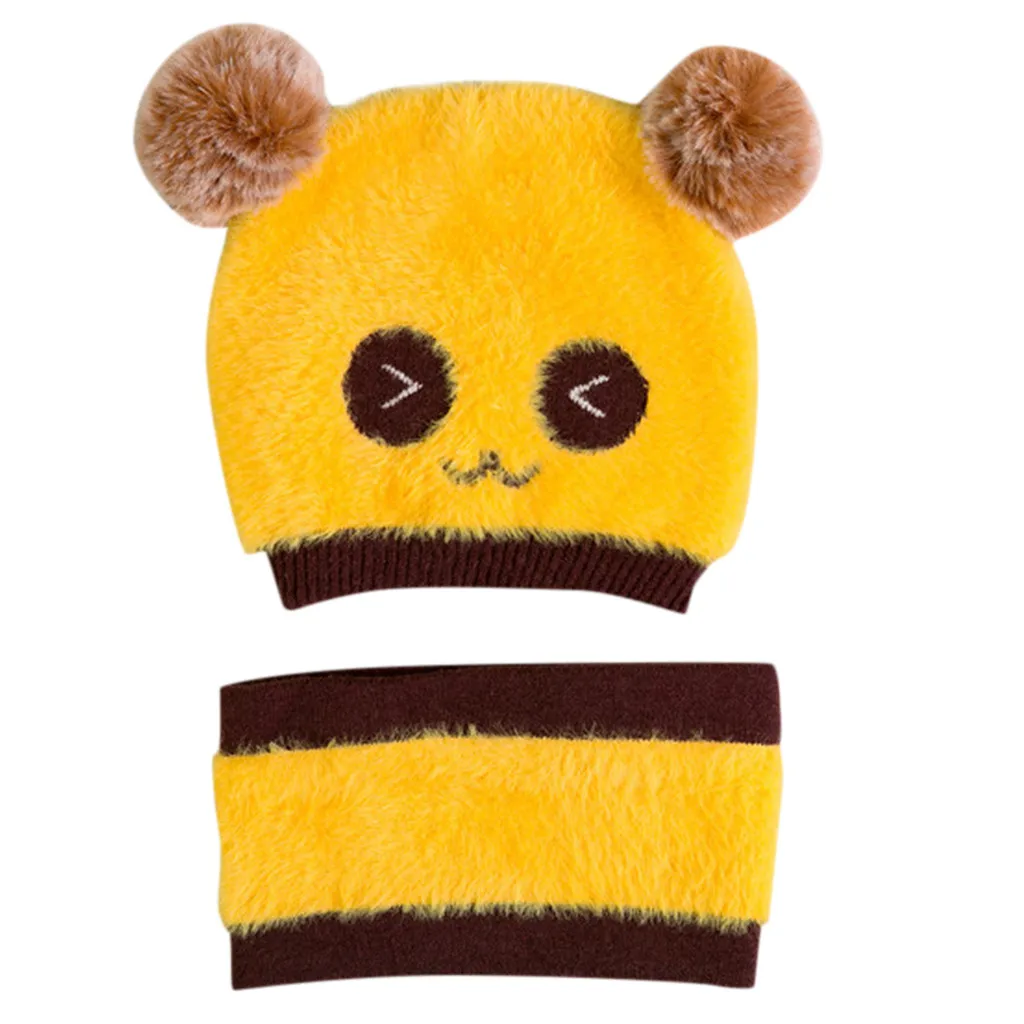 Детский мультяшный медведь с ушками для мальчиков и девочек, детская милая мягкая шапка + шарф, комплект из двух предметов
