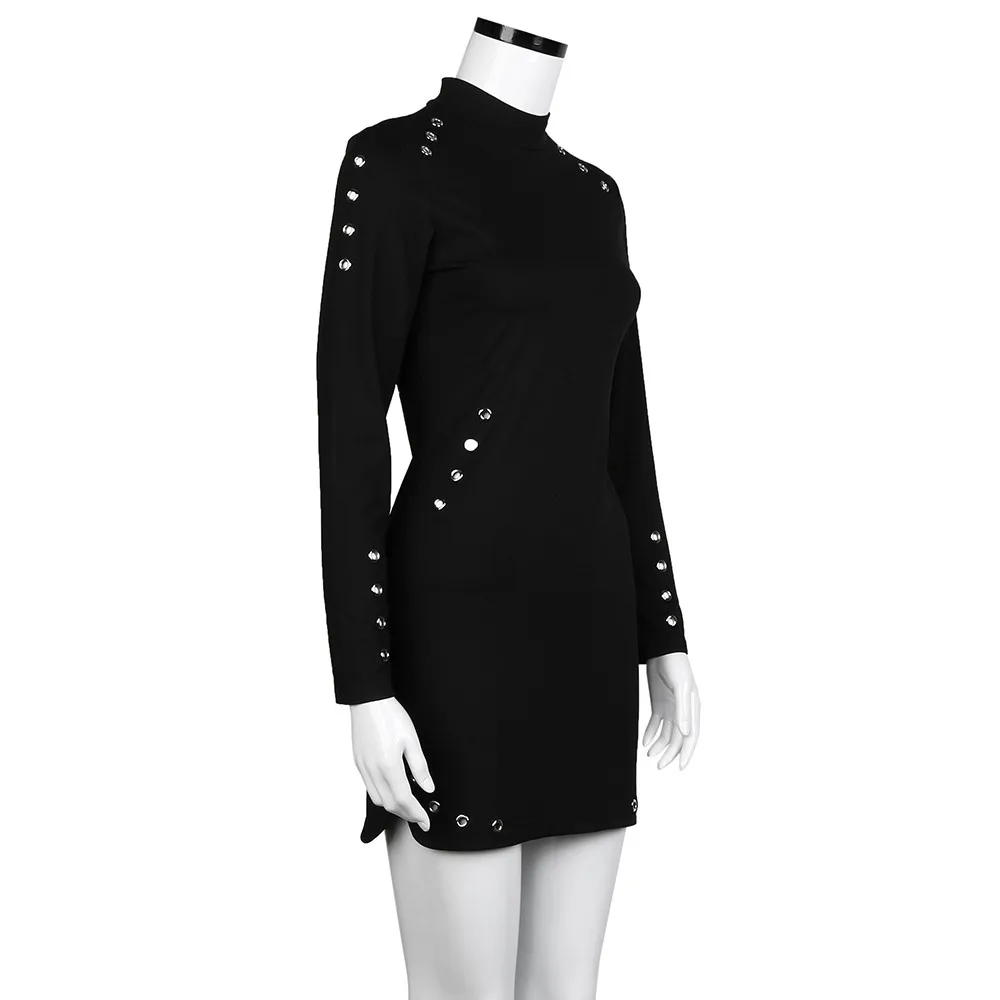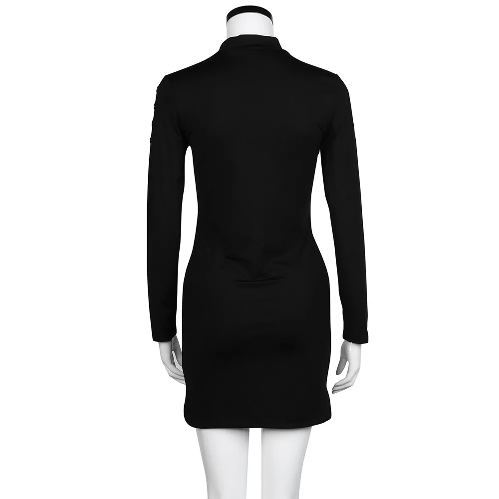 Женская сексуальная черная с высоким воротником с длинным рукавом посылка на бедрах тонкое платье