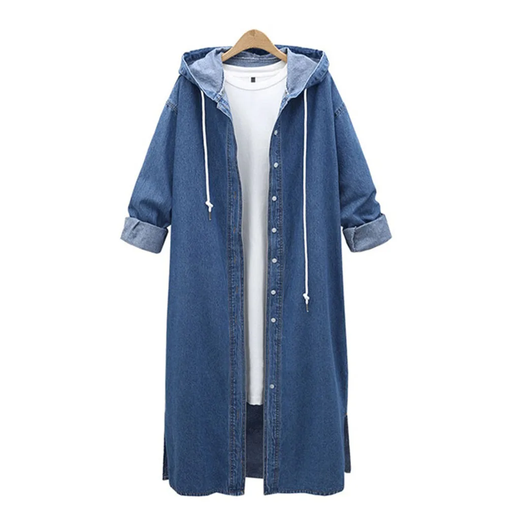 Женская мода однобортный открытый капюшон толстовка длинное пальто куртка верхняя одежда