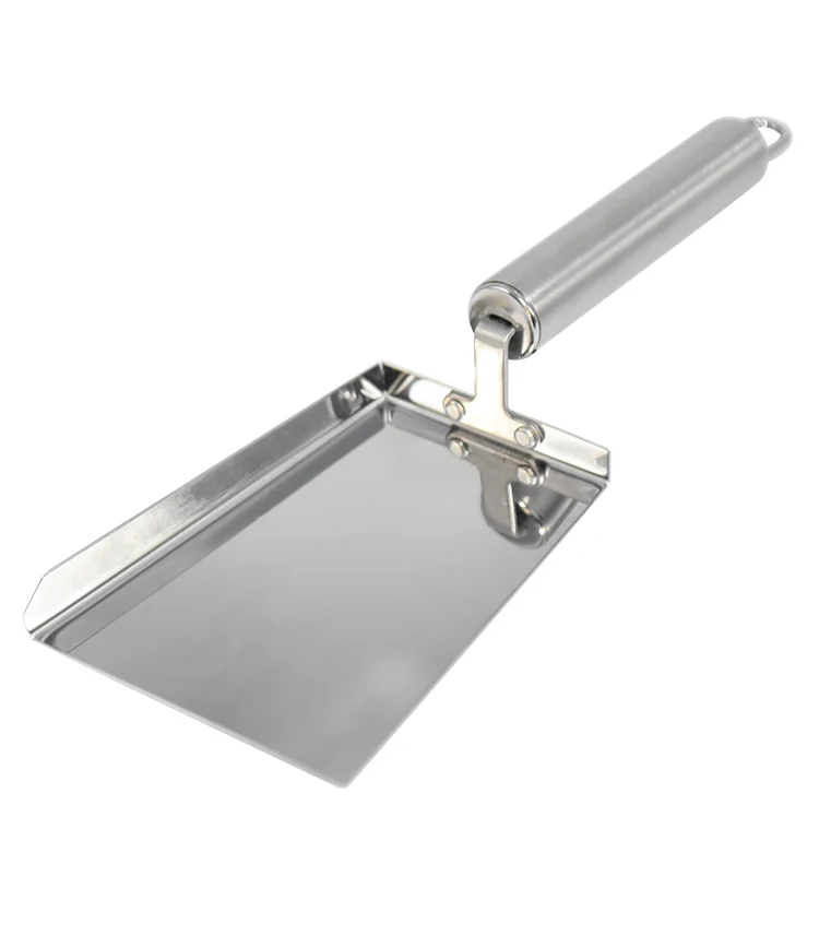 Ручка из нержавеющей стали, лопата из нержавеющей стали, 1 сторона с ограждением. Прост в использовании и чистке. Изготовлен из прочного материала, длительный срок службы. Используется для распаковки, очистки меда от экстракторов и ведер. Также отлично подходит для быстрого соскабливания и очистки воска и прополиса от рамок/пола/крыши в ваших ульях.