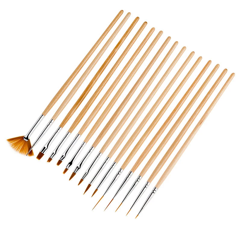 15Pcs/set Different Shape Nib Paint Brush Multifunction Wooden Handle Watercolor Nail Brush Pen For Girl Student Art Supplies