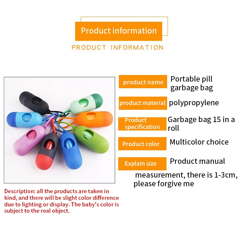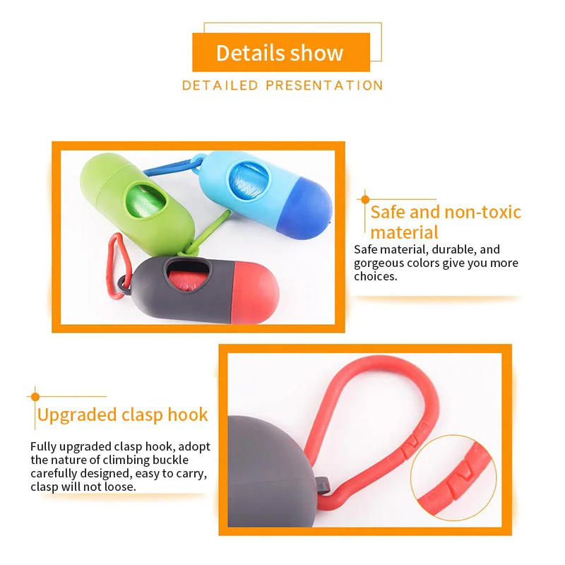 Многоразовый дизайн формы таблетки, легко вынуть мешок через его отверстие, очень портативный и практичный, помогая вам очистить отходы домашних животных легко в любом месте.