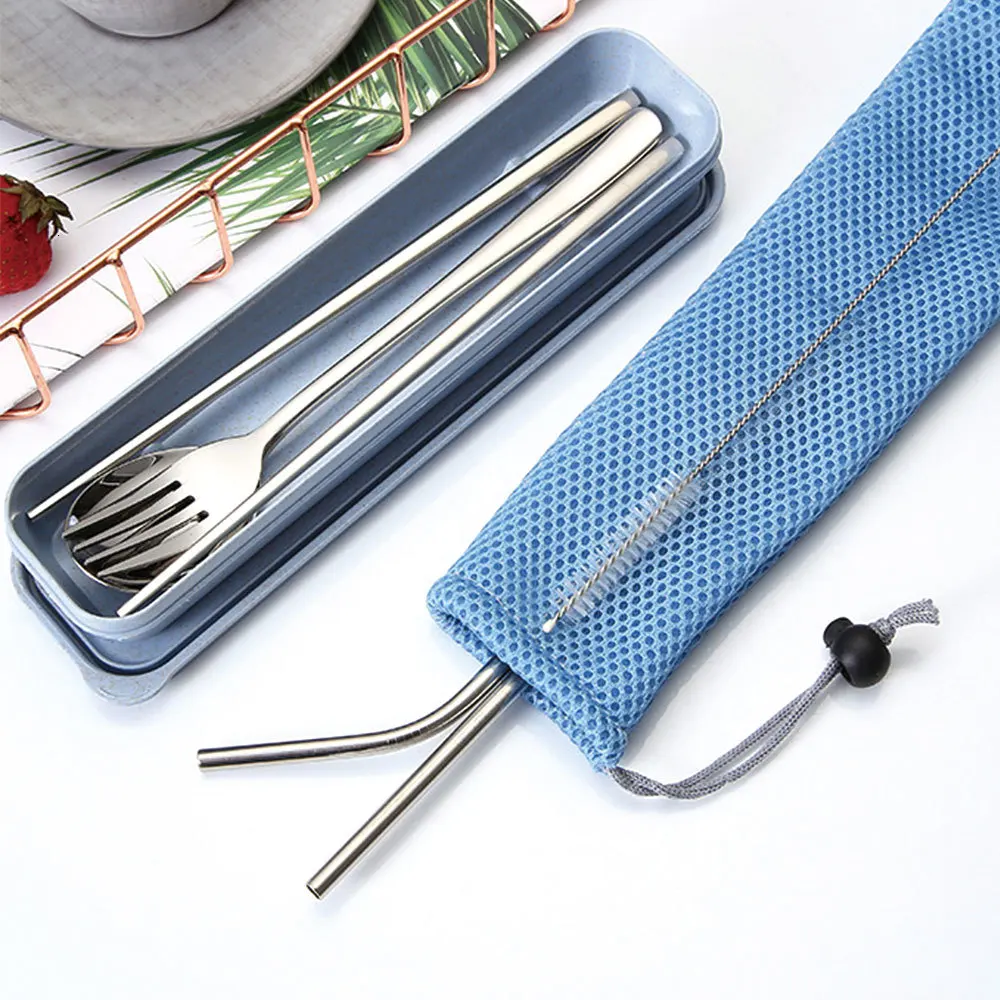 Посуда из нержавеющей стали, набор столовых приборов для путешествий, кемпинга, многоразовая посуда из серебра с ложкой, вилкой, палочками для еды, соломенный и портативный чехол 25