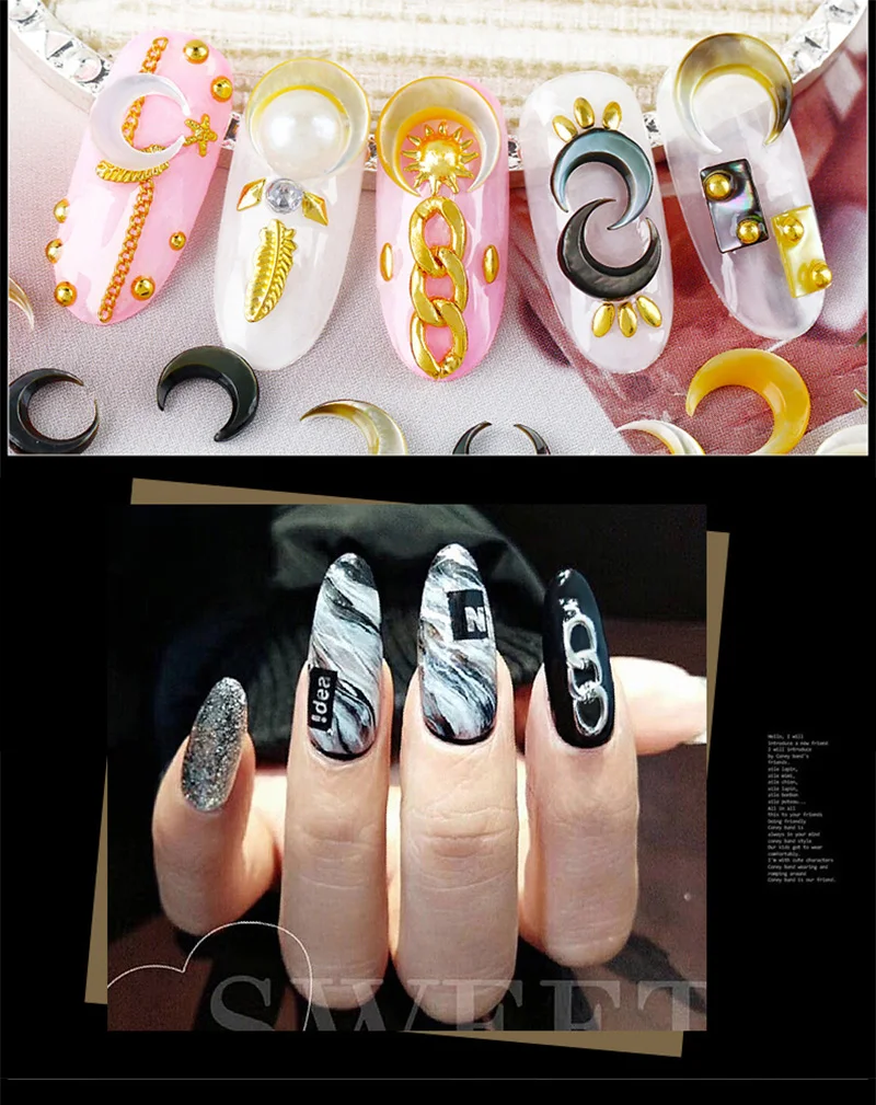 Золотые, серебристые, черные заклепки, 3D украшения для ногтей, металлические шпильки, цепь, скрученные кольца для дизайна ногтей, советы, аксессуары для самостоятельного маникюра