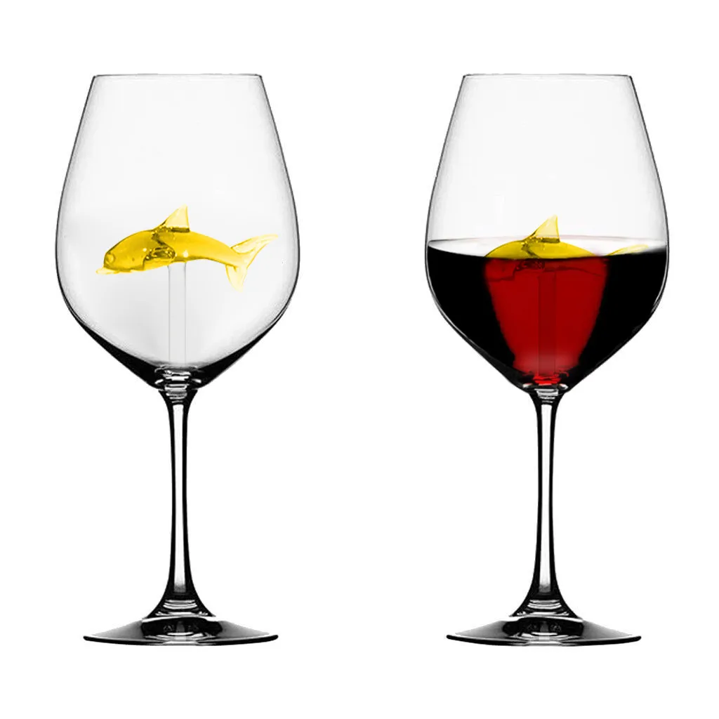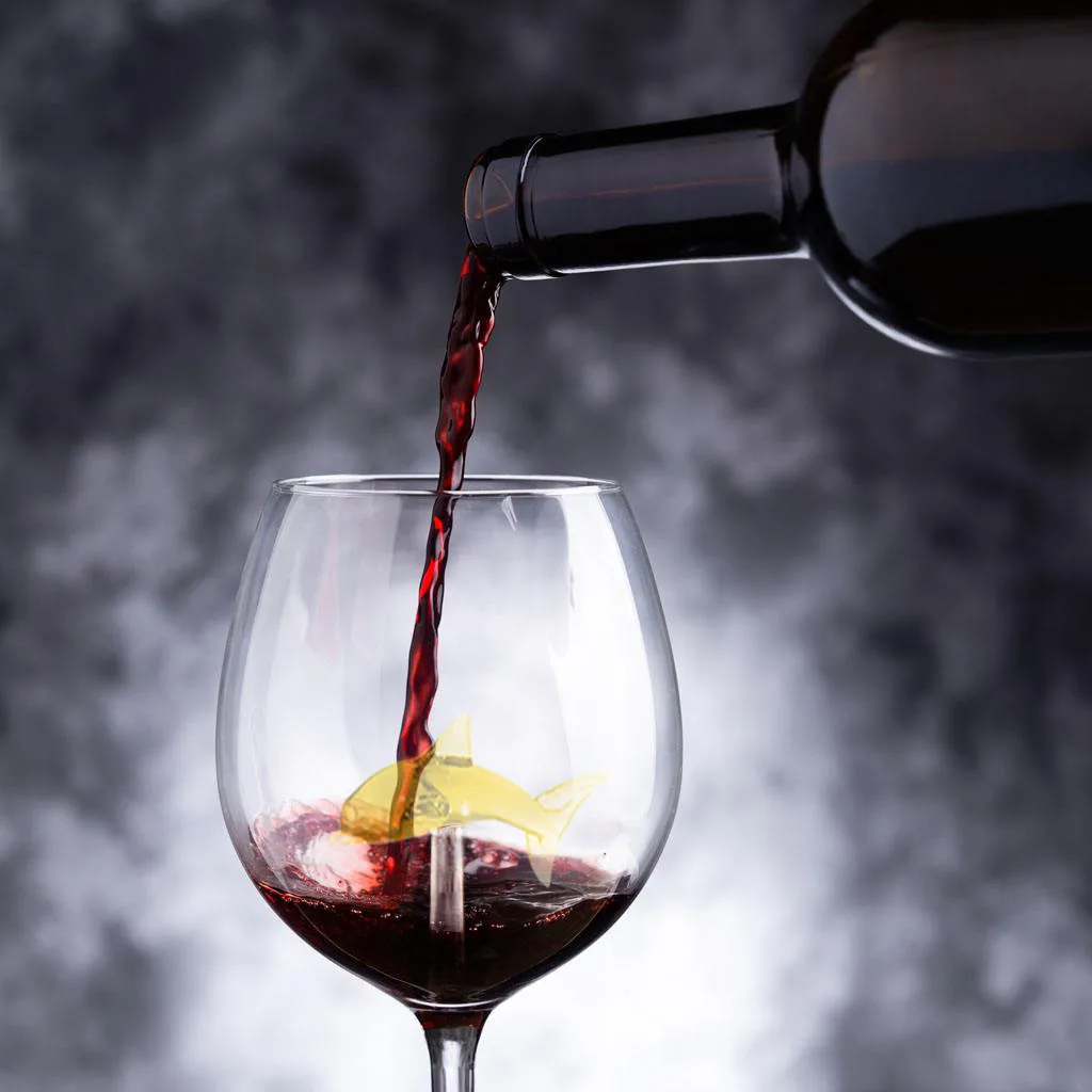 Налейте красное вино в бокал для красного вина с дельфином, пусть вино вращается с акулами, пахнет ароматом и вкус каждого укуса.