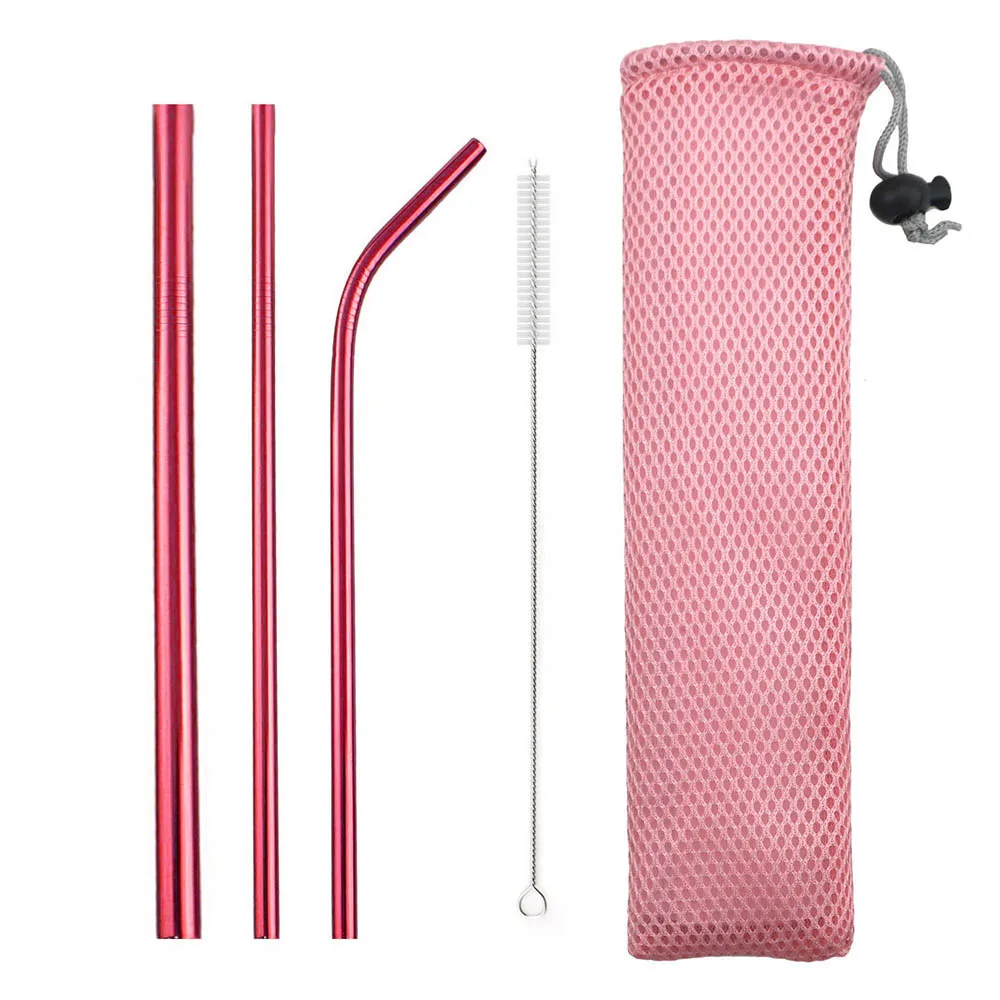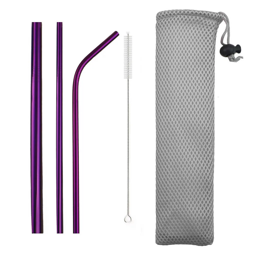 1/4/8 шт. мульти металлическая соломинка комплект многоразовые соломы 304 Нержавеющая сталь питьевые Соломки с кистью экологически-безопасные соломинки для кружек 20/30 унций