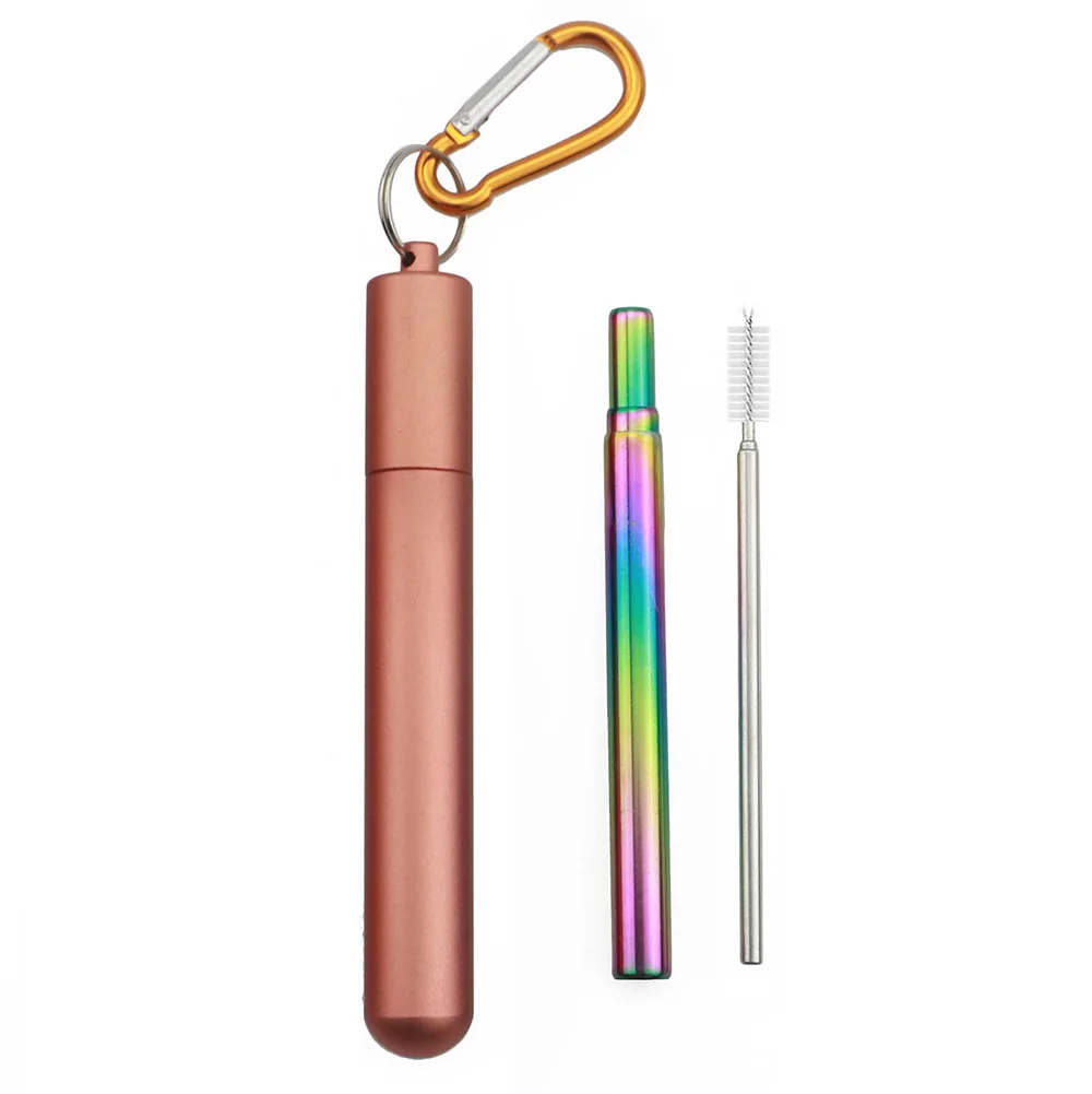 3 шт. портативные телескопические соломинки из нержавеющей стали радужные соломинки для питья дорожные соломинки многократного использования металлические соломинки с ведром и щеткой