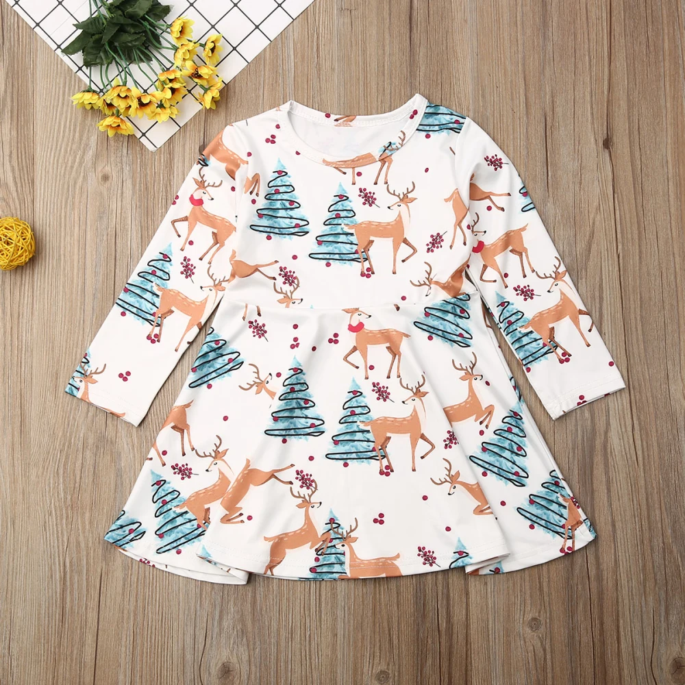 Новинка; Модное детское платье с рождественским оленем для маленьких девочек!