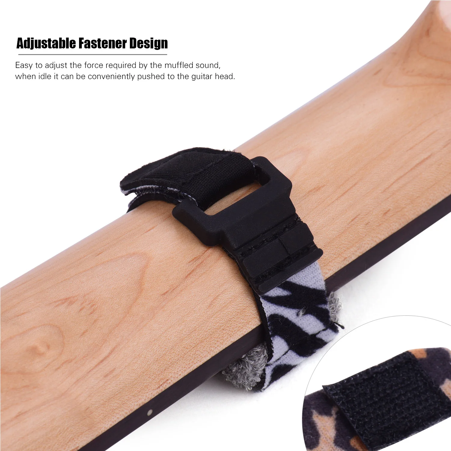 Конструкция застежки-легко отрегулировать силу, требуемую приглушенным звуком, при холостом ходу, можно удобно подтолкнуть к головке гитары.