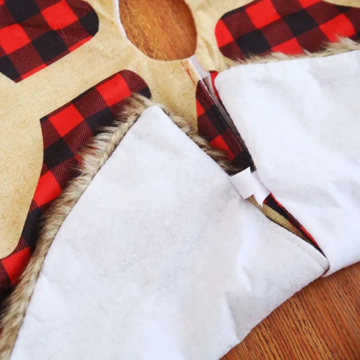3. Приносит очарование праздника с юбкой из мешковины с плюшевой отделкой, чтобы сделать деревенское домашнее рождественское чувство.