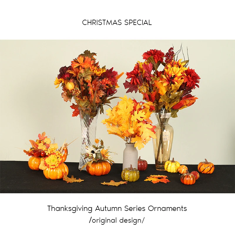 Искусственные цветы на День Благодарения для украшения дома искусственные тыквы с искусственными кленовыми листьями украшение на Хэллоуин