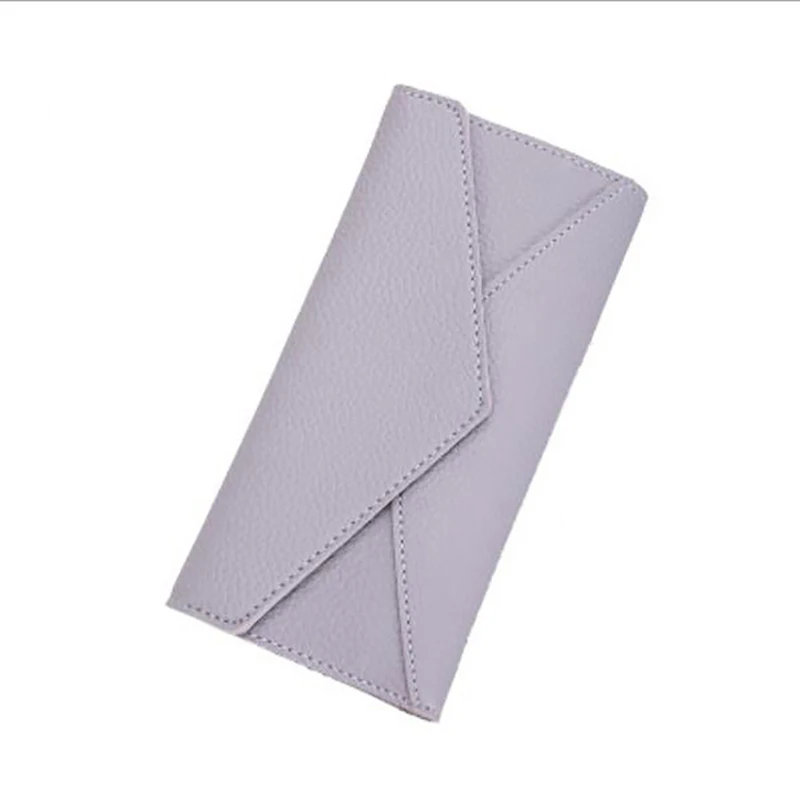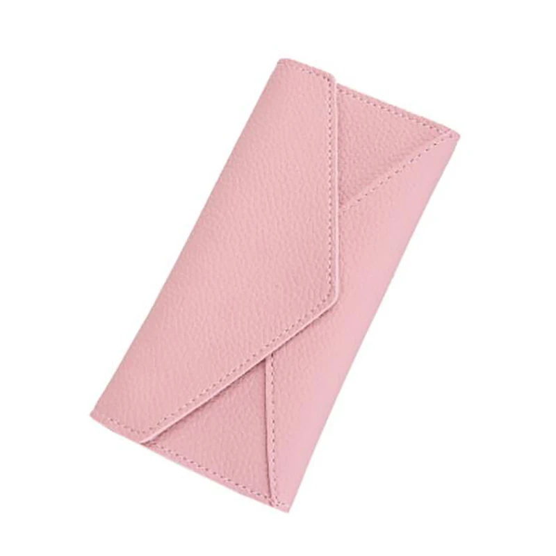 Модный женский кошелек-конверт на ремешке, Одноцветный, 2 сложения, 4 цвета, кошелек из искусственной кожи, длинный женский клатч, кошелек для монет