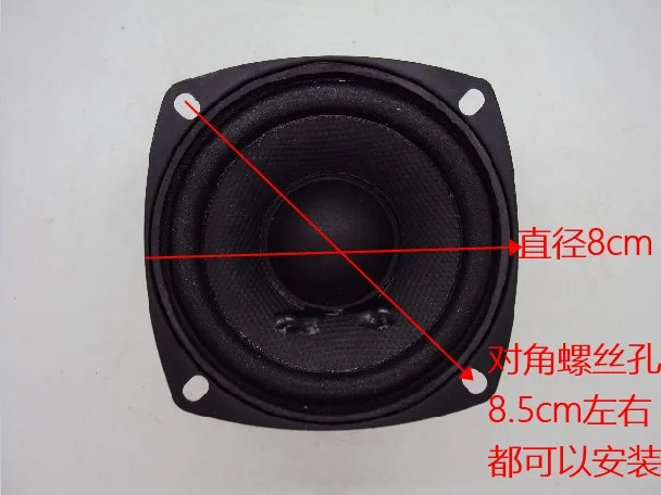 8 см в диаметре Диагональ резьбовое отверстие 8,5 см Открытие 7 см Высота 5,8 см Двойная магнитная сталь Небольшой магнитной 5 см Большой магнитный 5,5 см 16Ohm 1 шт. • Вес 0,5 кг.