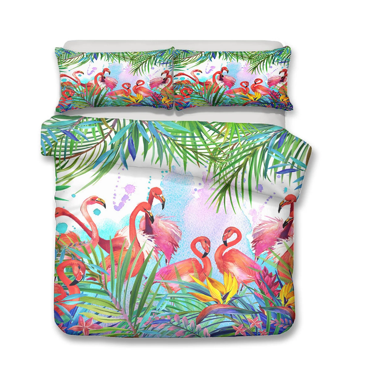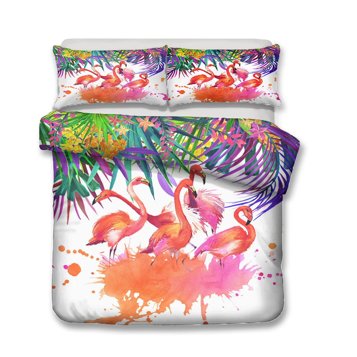 Красочное художественное постельное белье Фламинго тропические растения лист цветок пододеяльник набор наволочка для дома девочки покрывало на кровать одиночное двойное покрывало