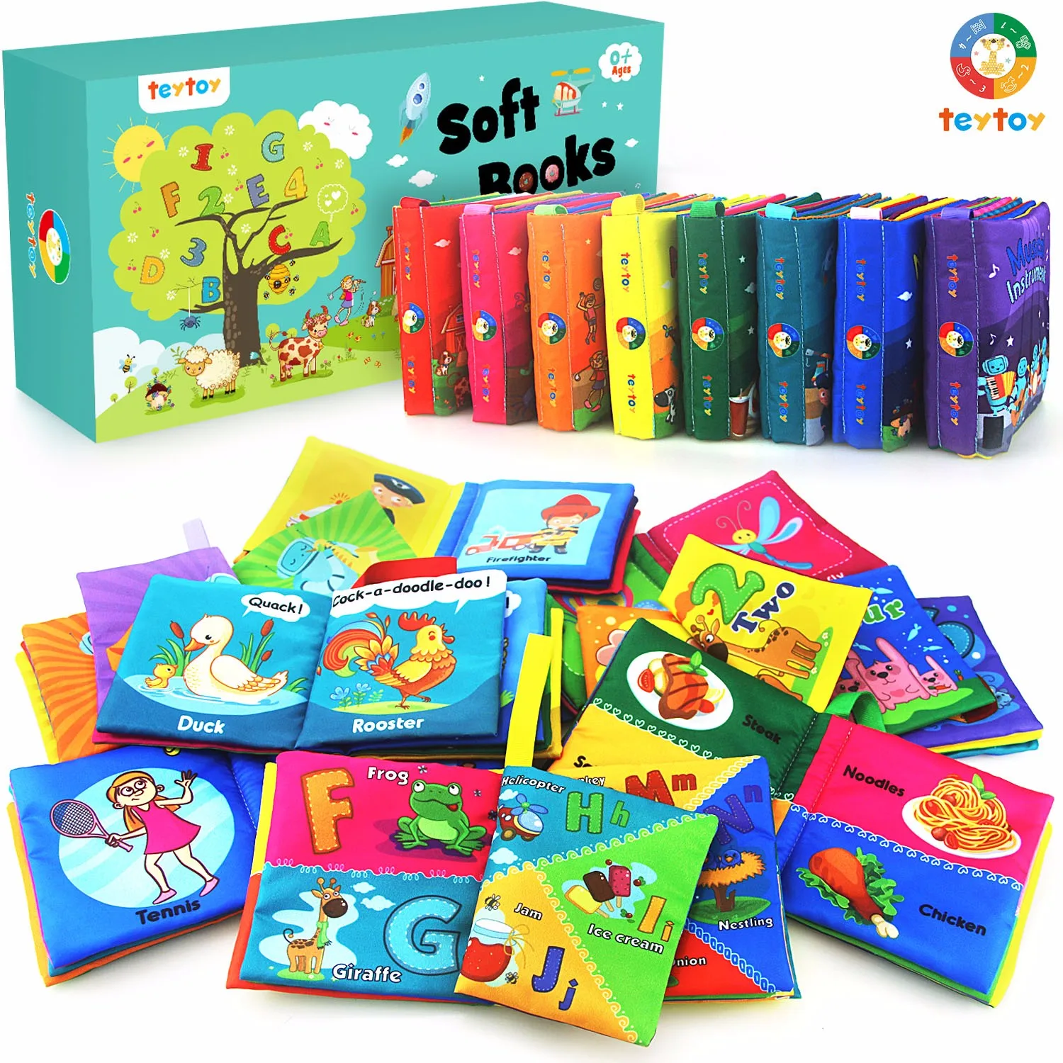 Высококачественная цифровая печать, яркий цвет, более четкие иллюстрации, не выцветает, наполнен легким мягким наполнителем и сморщенным тонером, яркий верх от 3 до 12 месяцев детских игрушек, аккуратная строчка, выдерживает бесчисленные стирки. Когда дело доходит до качества, мы не ставим под вопрос! Этот набор книг состоит из 8 различных книг. Ваш ребенок может узнать слова (алфавит, цифры, музыка, работа, мяч, еда, жук, животное)