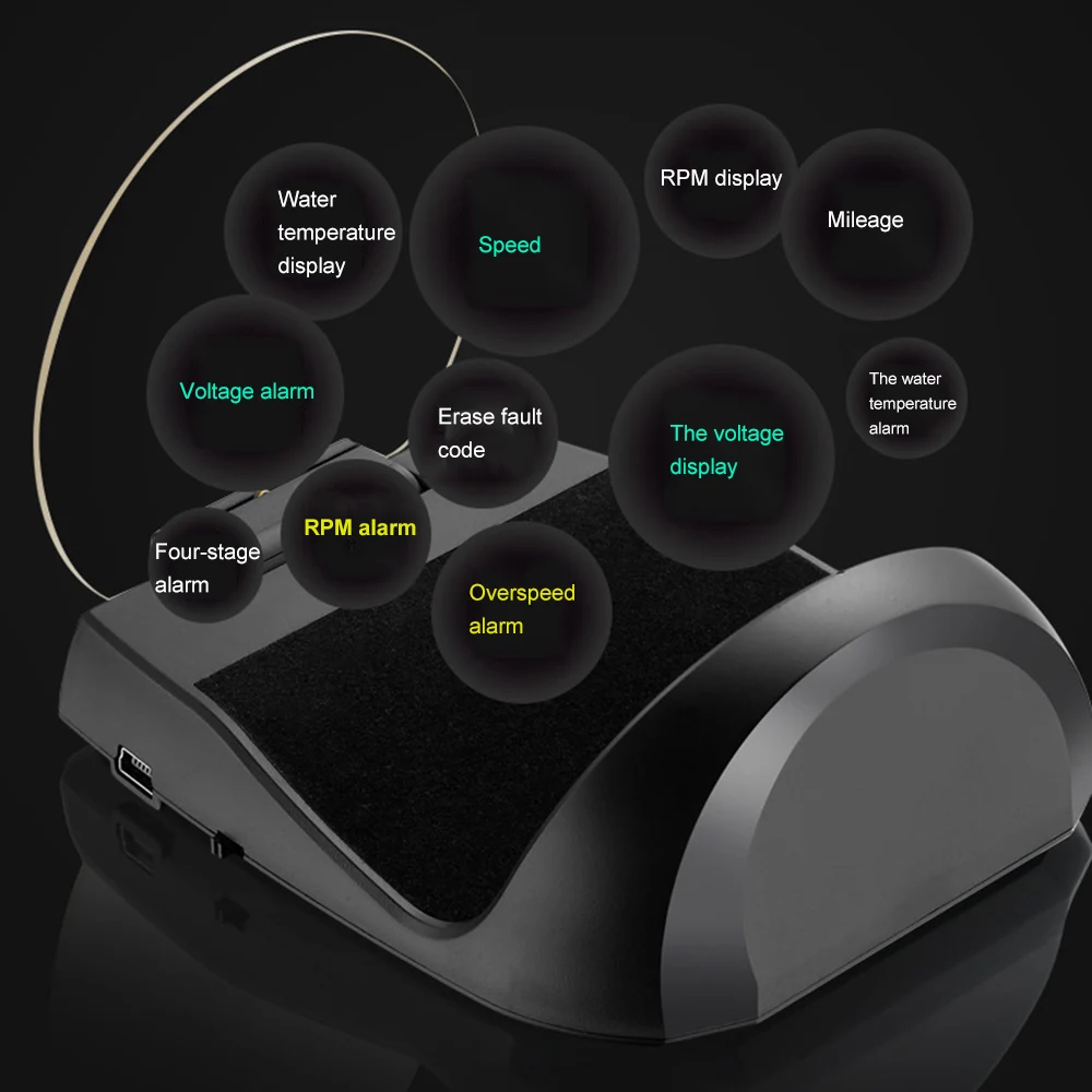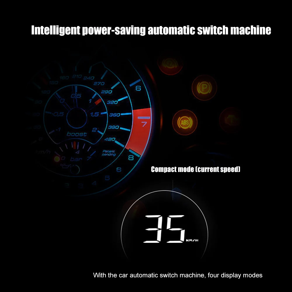 HUD может отображать данные вождения на лобовом стекле, такие как скорость, об/мин, температура воды, напряжение и т. д. на переднем стекле автомобиля. Информацию о вождении можно считывать мгновенно водителем и поддерживать идеальное состояние на пути с HUD.
