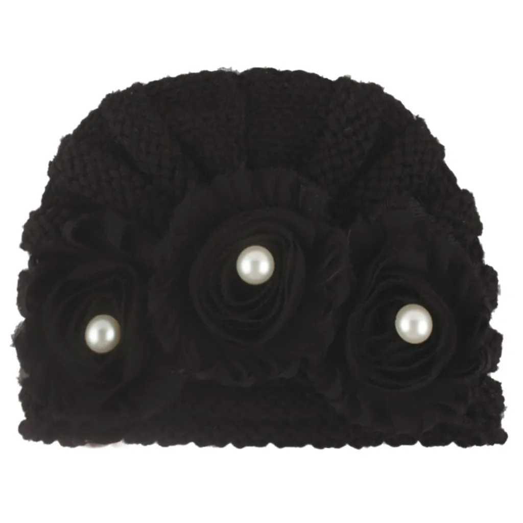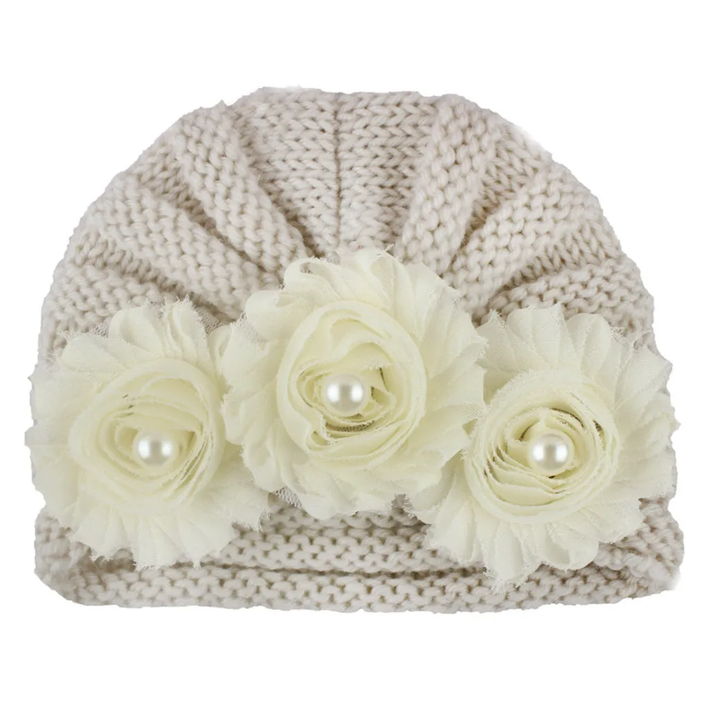 Вязаная шапка с бусинами для новорожденных мальчиков и девочек, повязка на голову, шапка головной убор, теплые комплекты с шапочками