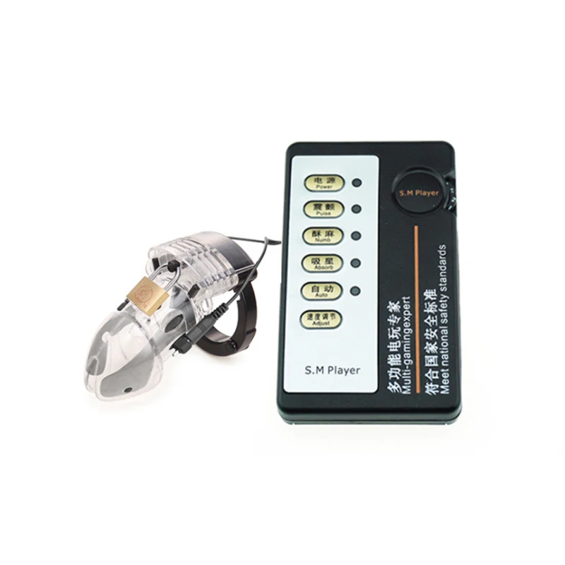 Материал клетки пениса: силикон + ABS. Электрическое управление импульсом: проводное или беспроводное. Цвет: красный, черный, прозрачный. Размер клетки: длина около 75 мм, диаметр около 35 мм. Размер стопорного кольца: максимальный диаметр около 52 мм. Питание контроллера: батарейка ААА (в комплект не входит). Посылка Как показано на изображении артикула.